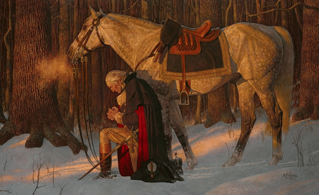 The legendary account of George Washington’s vision of a divine light in the woods is said to have occurred during